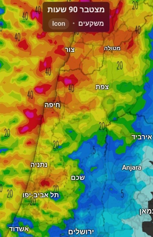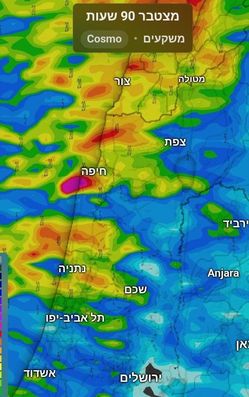 מקןוה שעד סוף השבוע נגיע ל-600 מ"מ בתחנות חיפה.